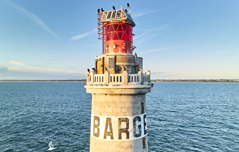 Phare en mer signalant un haut-fond dangereux. Conçu en 1861, à l'origine pour signaler l'entrée du port des Sables d'Olonne, d'une hauteur de 24,81m.