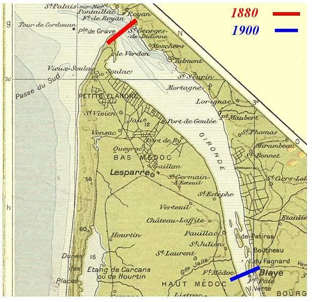 Le 26 février 1902, un croiseur, le D'ASSAS, parvient à remonter pour la première fois la Gironde jusqu'à Pauillac. Source : https://x.com/BertrandMagueur